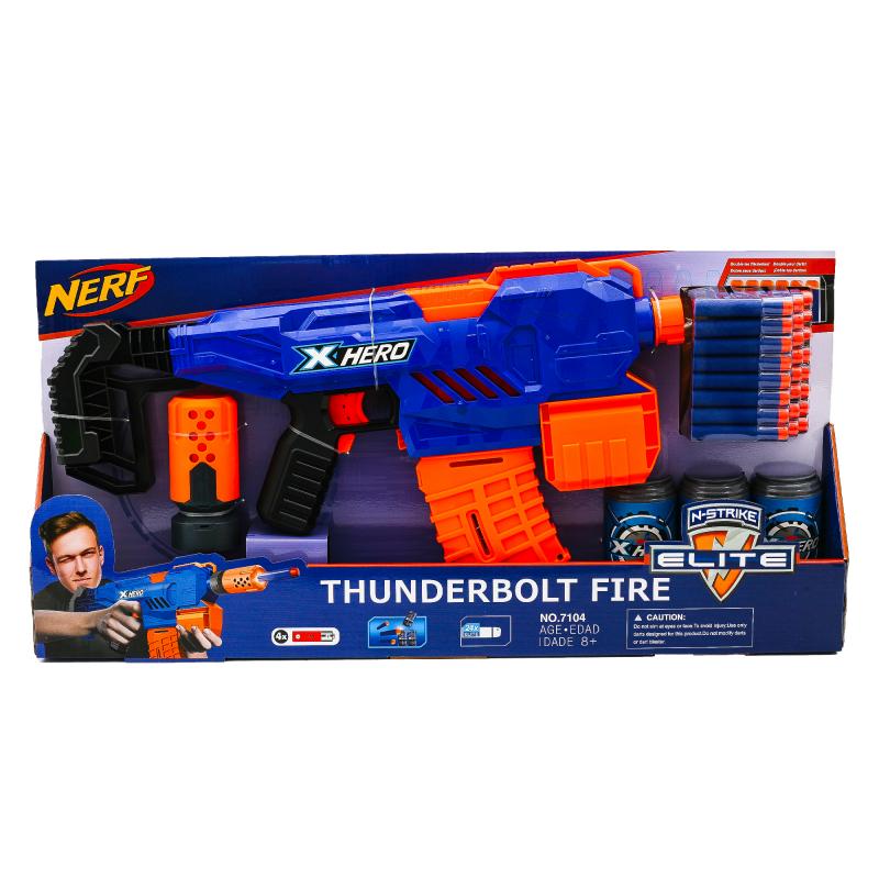 Автомат 56,5см, м'які кулі 24шт, банка-мішень 3шт, на бат-ці, в кор-ці, 7104