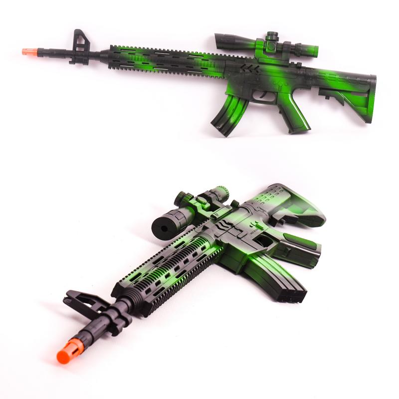 Пластиковый автомат, при нажатии на курок имитирует звуки выстрела и "искрится".