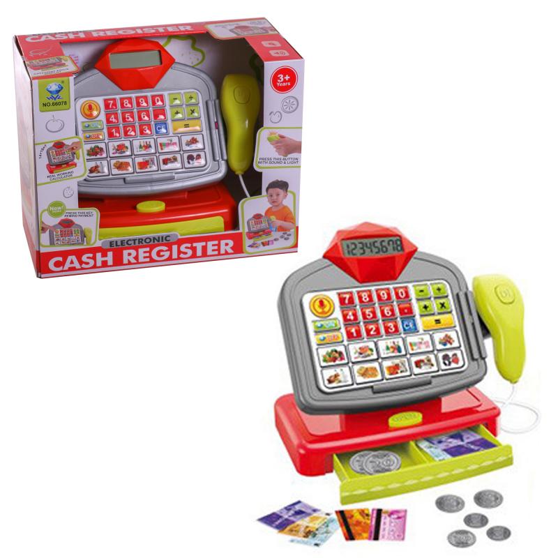 Если ваш ребёнок мечтает стать продавцом, ему просто необходим этот кассовый аппарат! Игрушка работает как калькулятор, а сканер оснащён звуковыми и световыми эффектами. Кроме того, в комплект входят игрушечные деньги. Весёлая музыка, несомненно, увлечёт малыша!