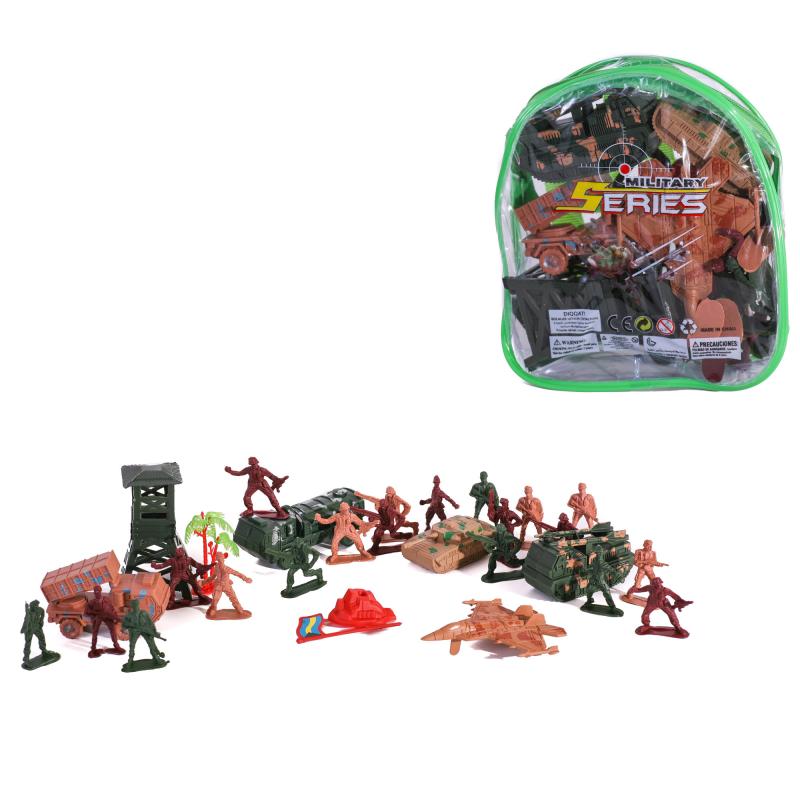 Старые добрые солдатики – любимцы многих поколений мальчиков. Помимо них, в данный набор входят ещё и военная техника, и элементы пейзажа. С таким комплектом легко создать собственную боевую стратегию!