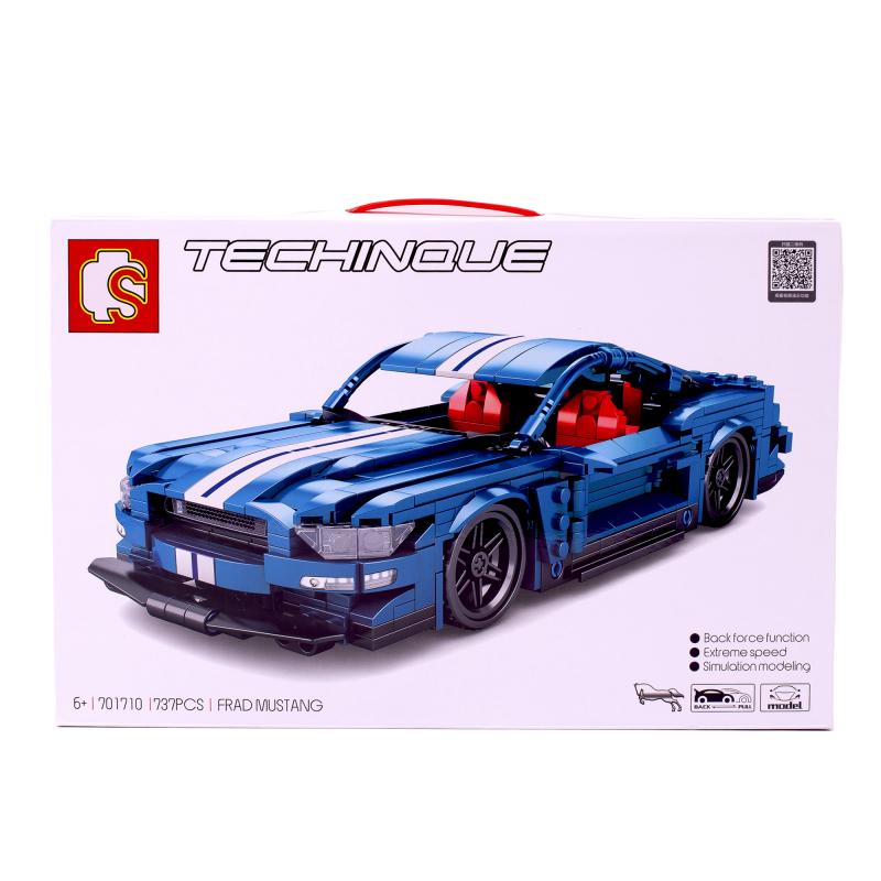 Набор конструктора собирается в модель спортивного автомобиля Frad Mustang, с инерционным механизмом движения. Двери открываются, салон наполнен деталями, есть имитация света на фарах. Такой конструктор - незаменимая игрушка для развития у Вашего ребёнка мелкой моторики, концентрации внимания, усидчивости, а также логического мышления.