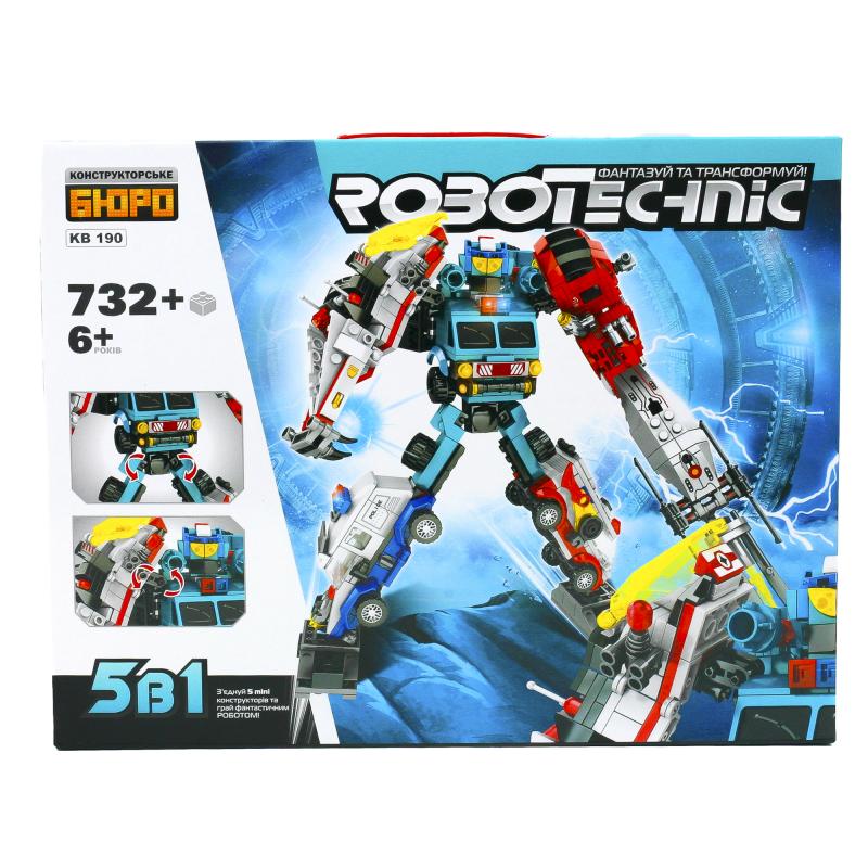 Конструктор, трансформер 5 в 1(робот+транспорт), 732 детали, KB 190