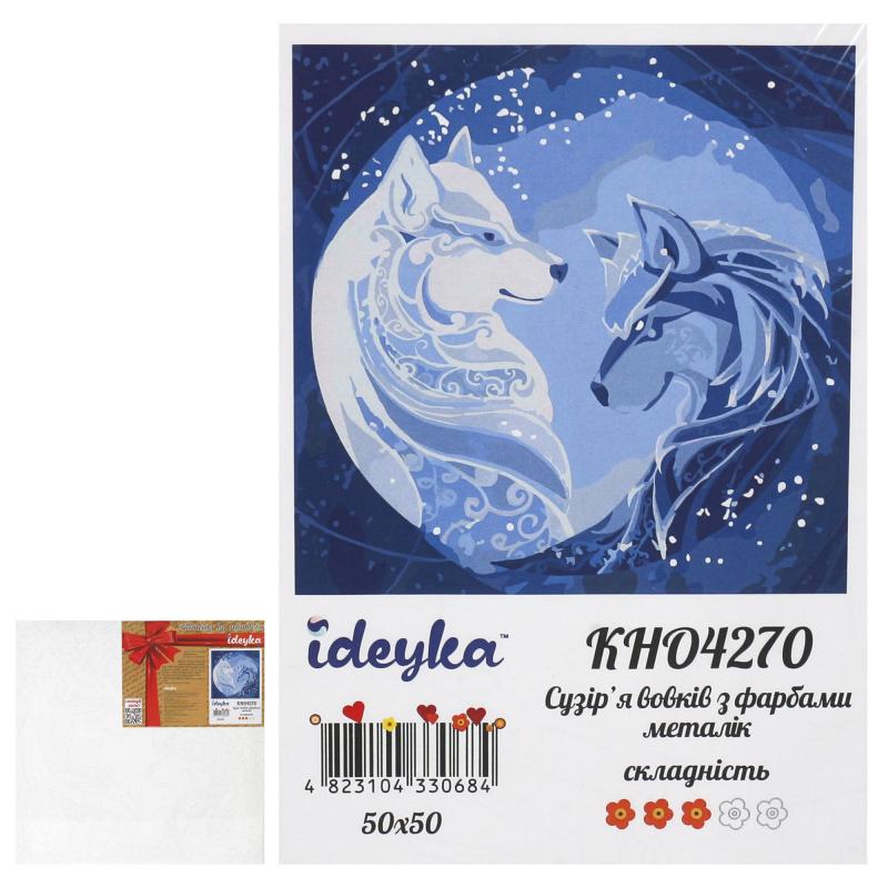 Набор для росписи номеров. "Созвездие волков с красками металлик" 50х50см, ID-KHO4270