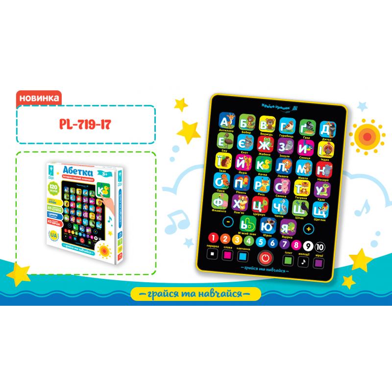 Планшет "Абетка" батар, на укр,навчання,букви, кольори, рахунок, короб., PL-719-17