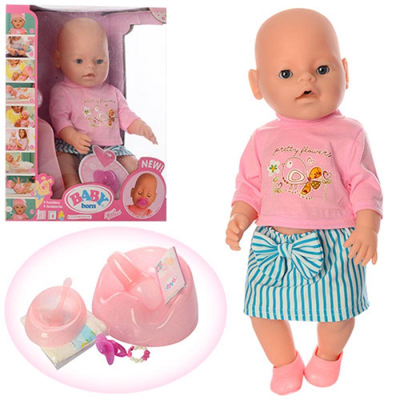 Пупс 42см, бутылочка ,горшок, соска-магн, тарелочка, ложка, каша, подгузник