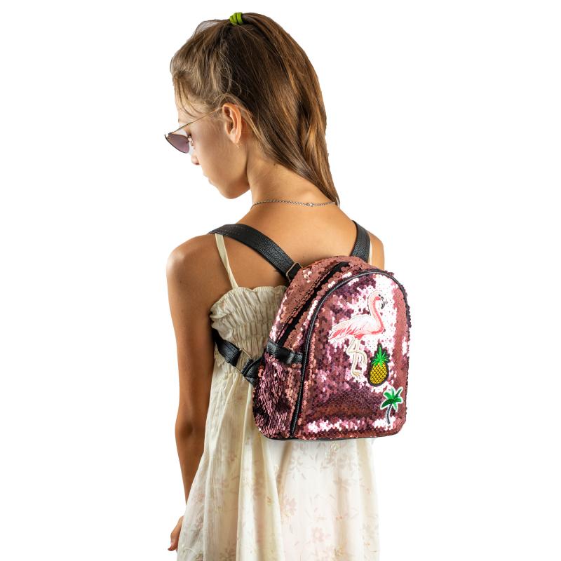Рюкзак для девочки выполнен в стильном дизайне.