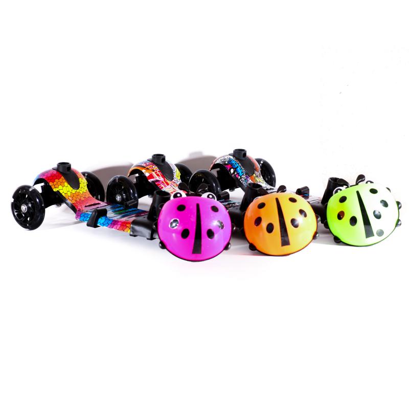 Транспорт можно использовать как каталку, беговел и самокат. Благодаря этому модель подходит деткам от 1 года, которые уже умеют самостоятельно сидеть. Для самых маленьких гонщиков предусмотрено комфортное сидение. Малыш будет сидеть на нем, а родители управлять движением с помощью ручки-толкателя. Как только ребенок сможет сам отталкиваться ножками от земли, ручку можно снять. Таким образом транспорт трансформируется в беговел. Для детей старшего возраста сидение убирается, превращая модель в самокат. Детские игрушки можно поместить в компактную корзинку на руле в виде божьей коровки. Широкая платформа оснащена прорезиненными вставками, исключающими скольжение ног райдера.