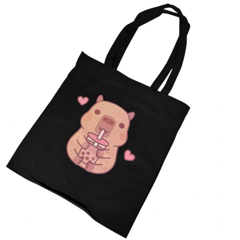 - Шопер КАПІБАРА З НАПОЕМ ЧОРНИЙ 40х34см З БЛИСКАВКОЮ