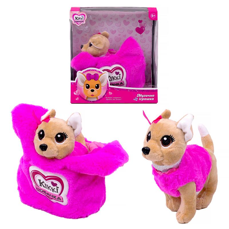 Размер собачки 20 см, она одета в стильный комбинезон, также у неё есть специальная сумочка-переноска. Озвучка на украинском языке. Милая Кикки с большим удовольствием будет сопровождать Вашего ребёнка на всех прогулках.