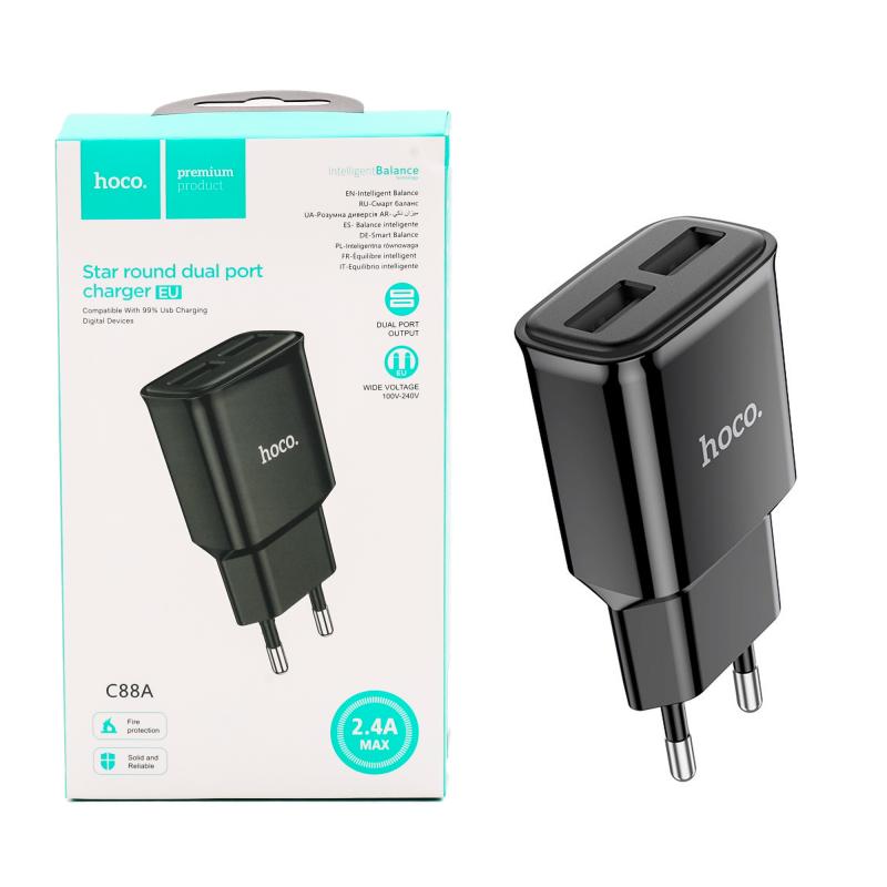 Мережевий зарядний пристрій Hoco C88A, чорний, 99190-1
