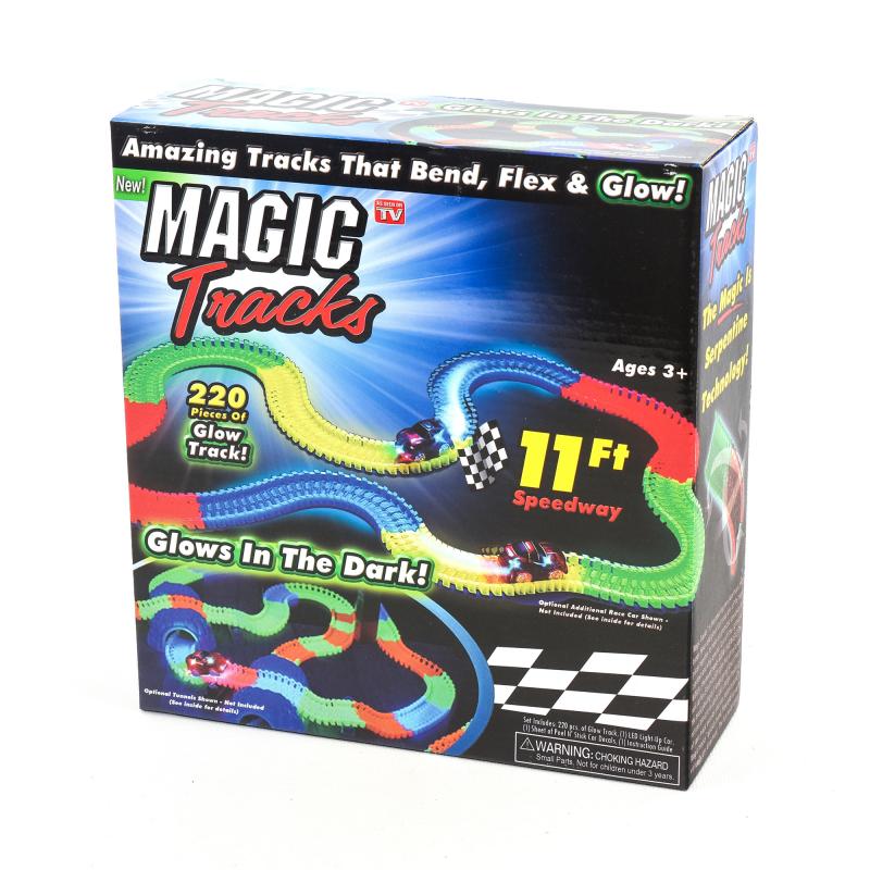 Игровой набор гибкий трек "Magic Track" со световыми и музыкальными эффектами в комплекте машинка и 220 деталей. Magic Track — это уникальный светящийся гоночный трек – конструктор. Яркий, гибкий, супер-позитивный!Трассу можно изогнуть или повернуть на 360 градусов.По треку стремительно мчится машинка с подсветкой, огибая множество различных преград и резких поворотов.А еще лучше, когда вы выключаете свет и погружаетесь в магию "Magic Tracks"! Гоночный трек светится в темноте.Настоящий простор для воображения и фантазии!